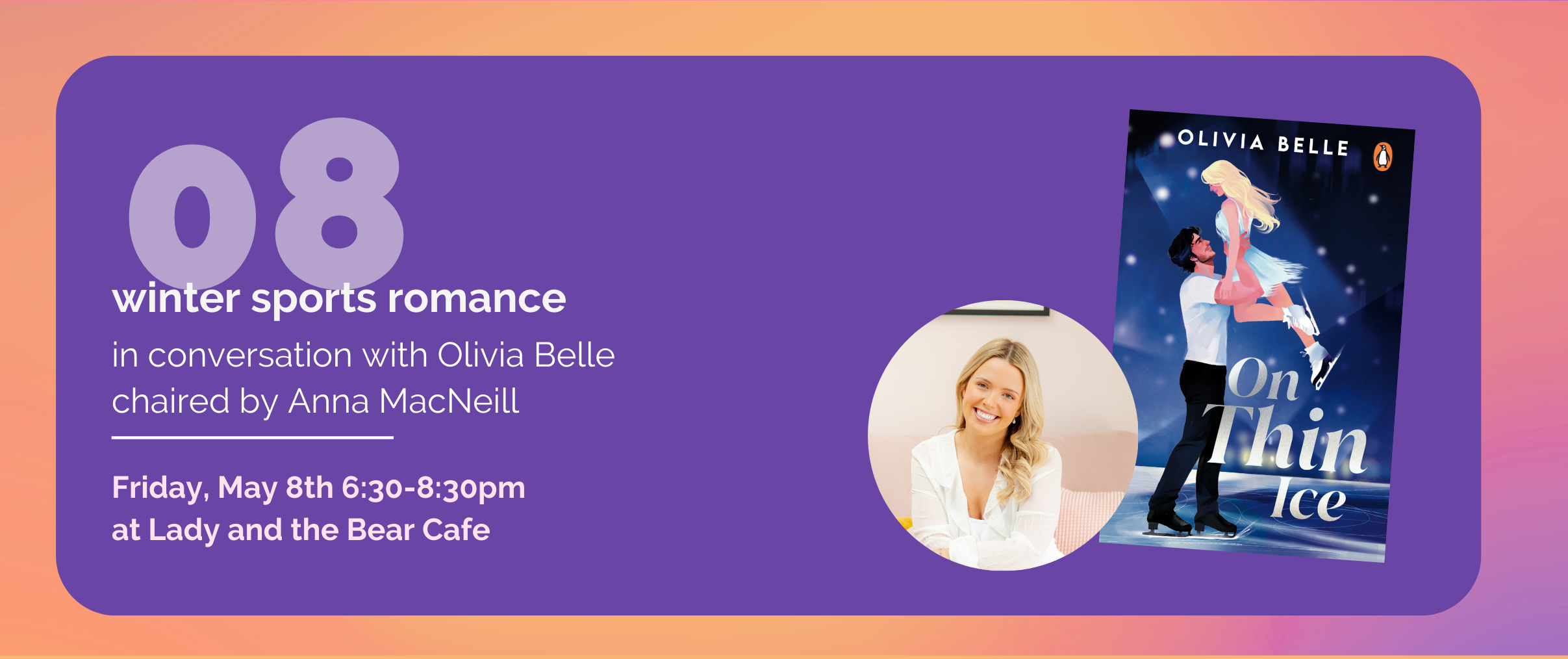 Join us for an in-person event with Olivia Belle to celebrate her new sports romance ON THIN ICE! More details on the event are down below!