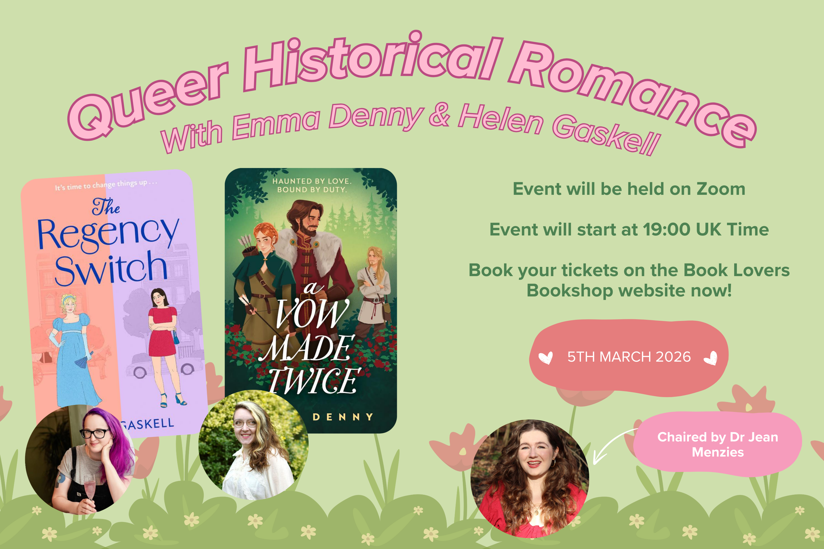 Join us for an online event with Helen Gaskell and Emma Denny to celebrate their 2026 Historical Queer Rom-Coms and celebrate and chat more about Rom-Com fiction! Check down below for more details on the event and how to get your ticket! The event will be chaired by Dr Jean Menzies.