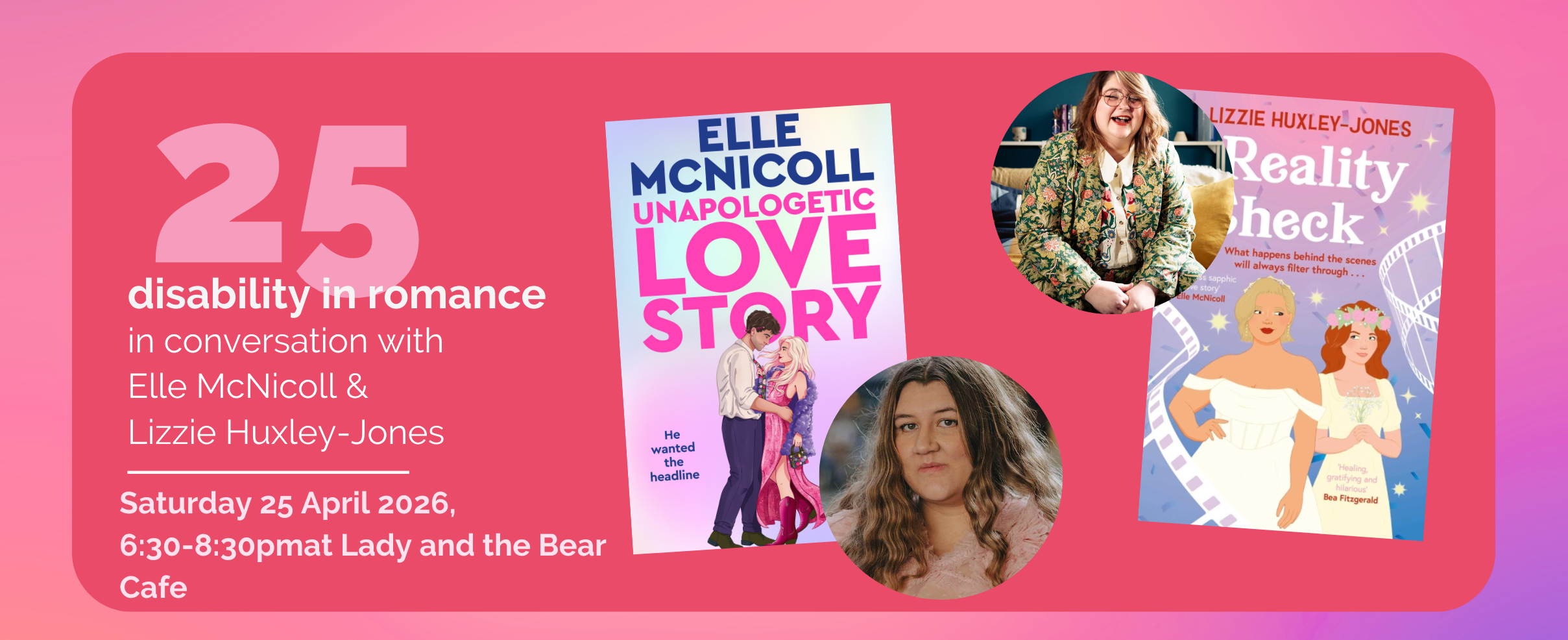 Join us for an in-person event with Elle McNicoll & Lizzie Huxley-Jones to talk about disability representation in romance & celebrate their new 2026 romance releases! More details on the event are down below!