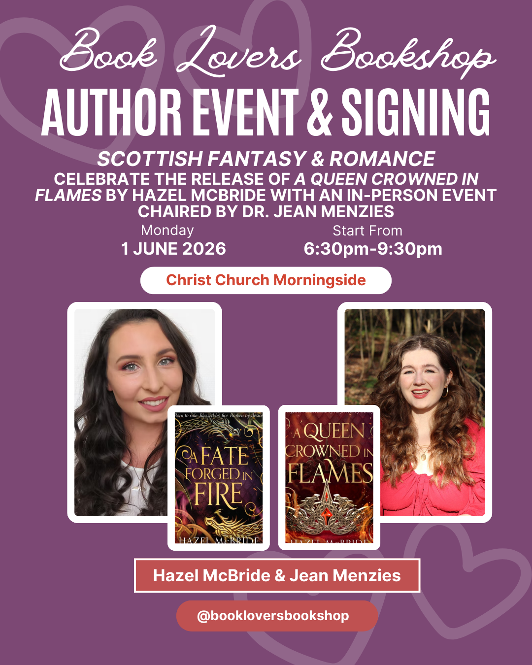Join us for an in-person event on the first day of Pride month to talk about Hazel McBride's anticipated sequel to A Fate Forged in Fire! The event will be chaired by Dr. Jean Menzies.